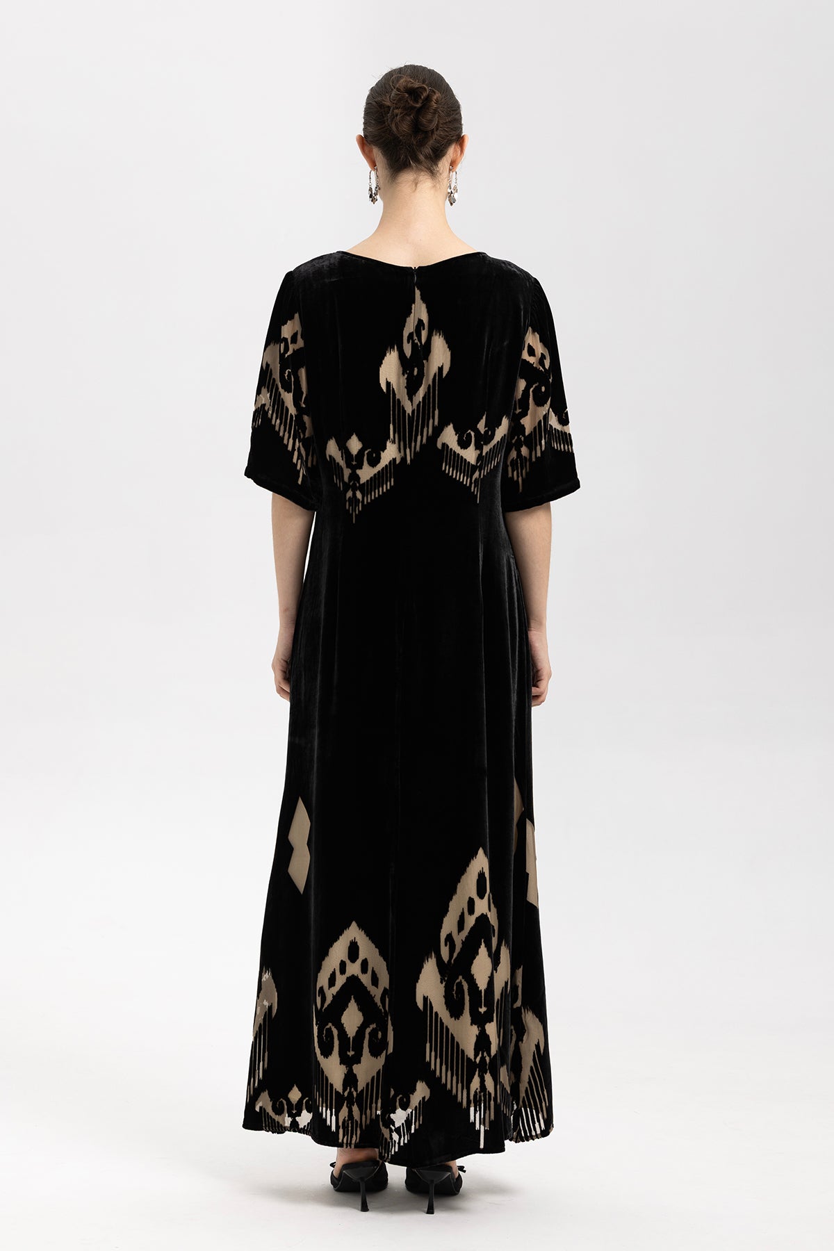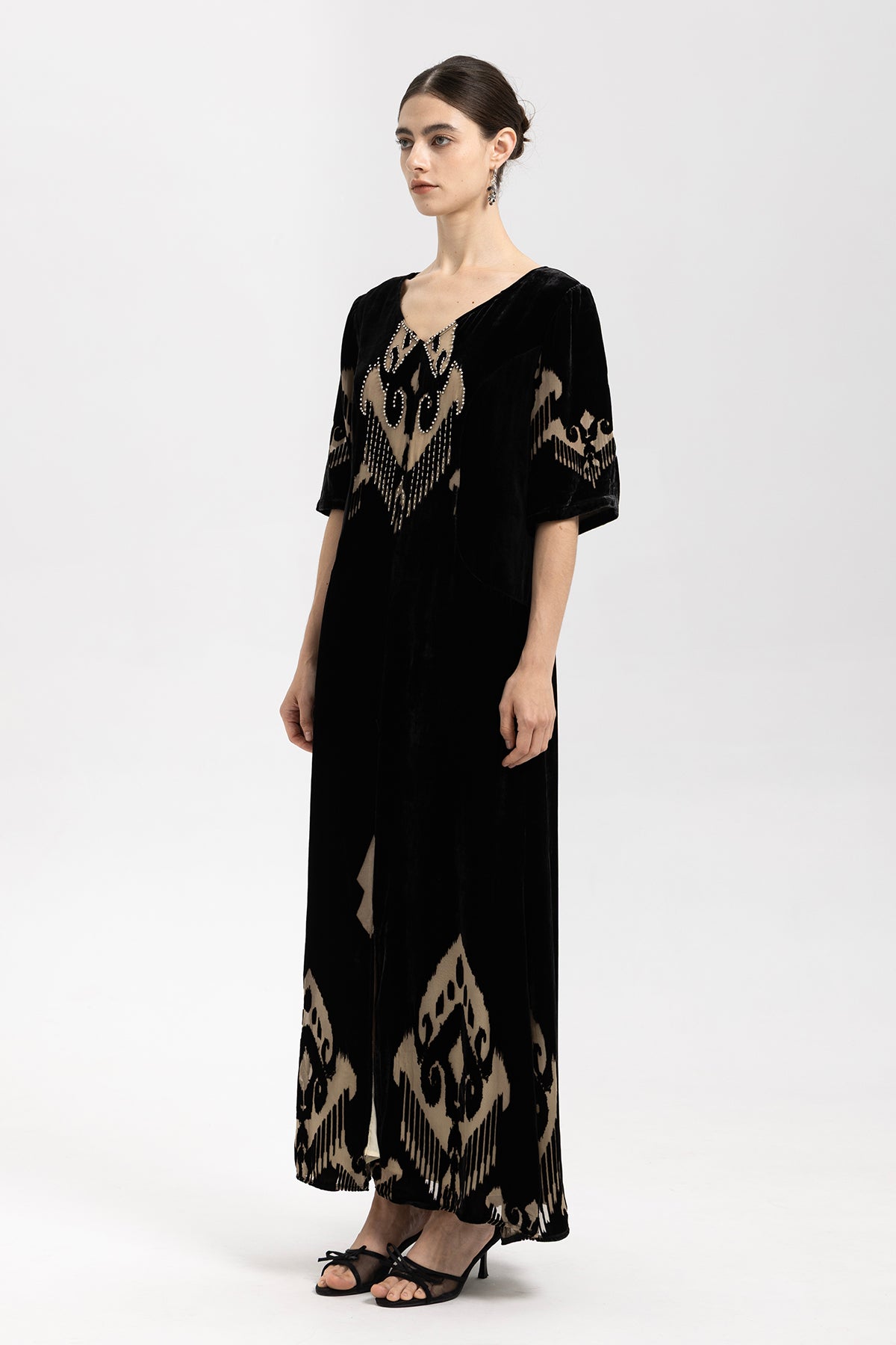 Ikat Burnout Velvet V-Neck Maxi Dress