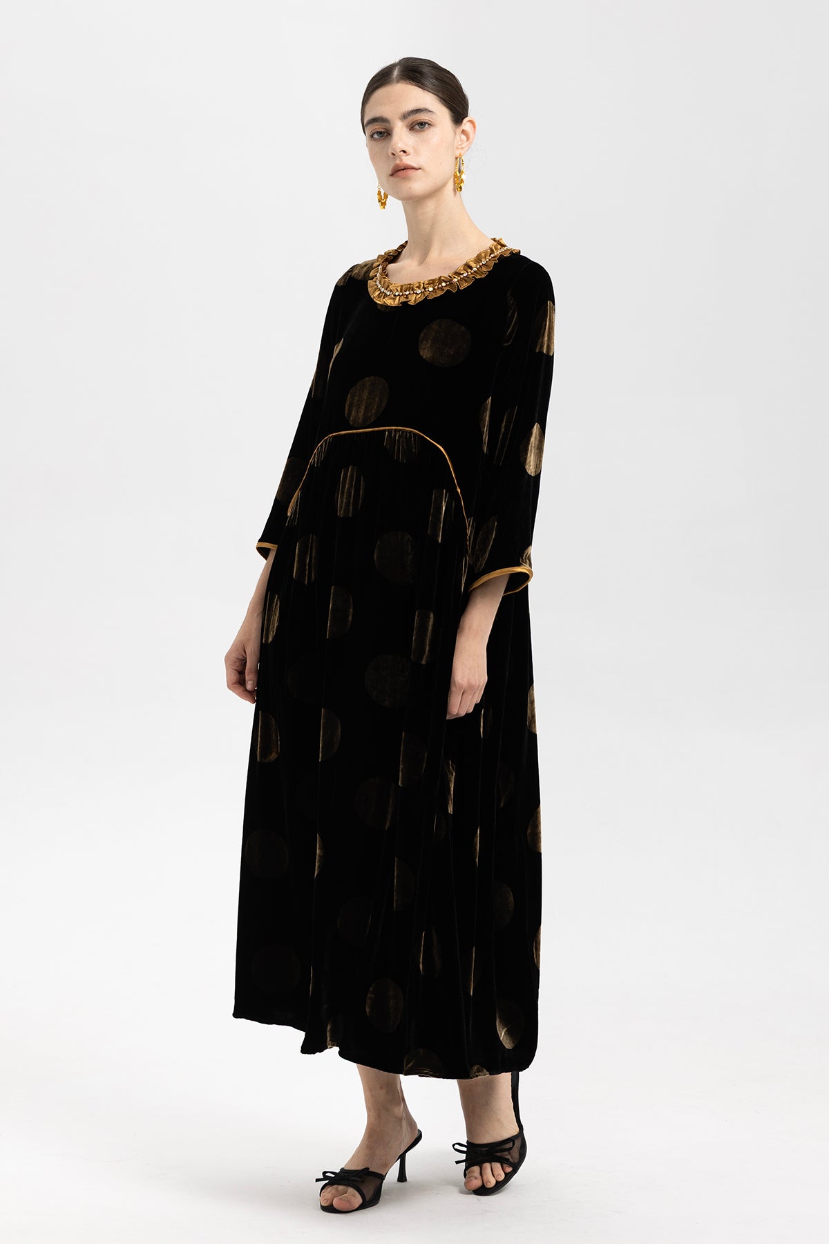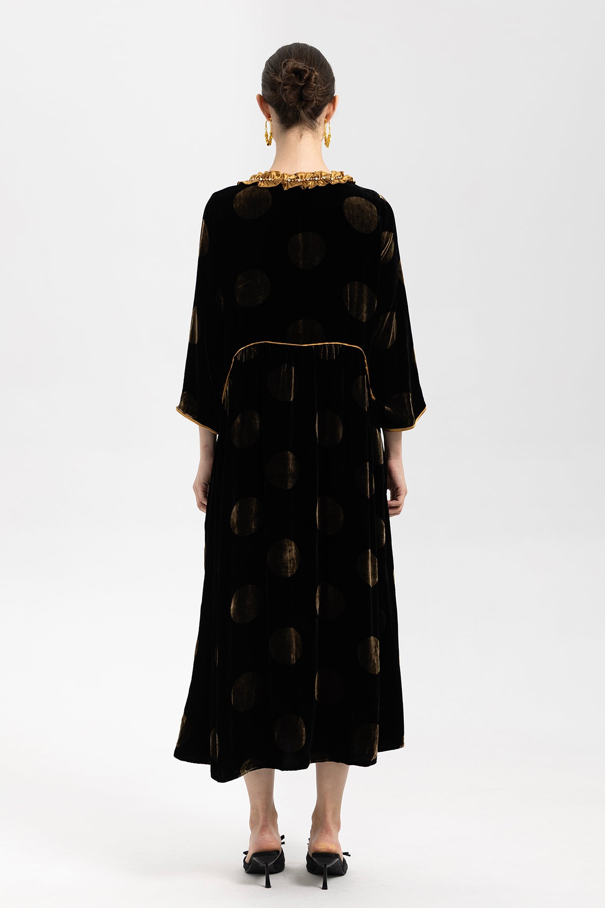 Mila Polka Dot Ruffle Collar Velvet Dress