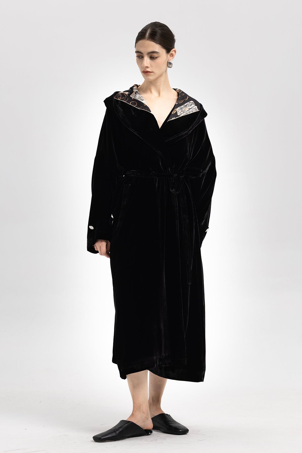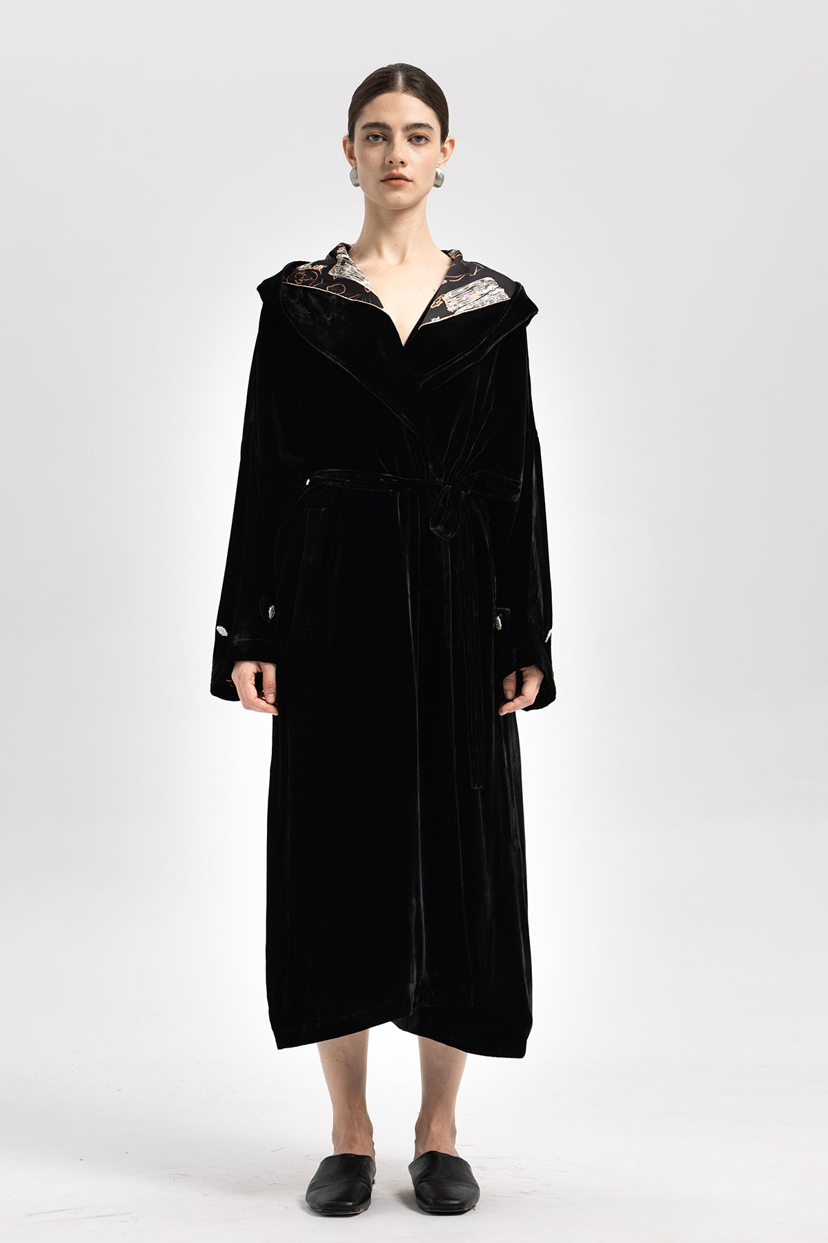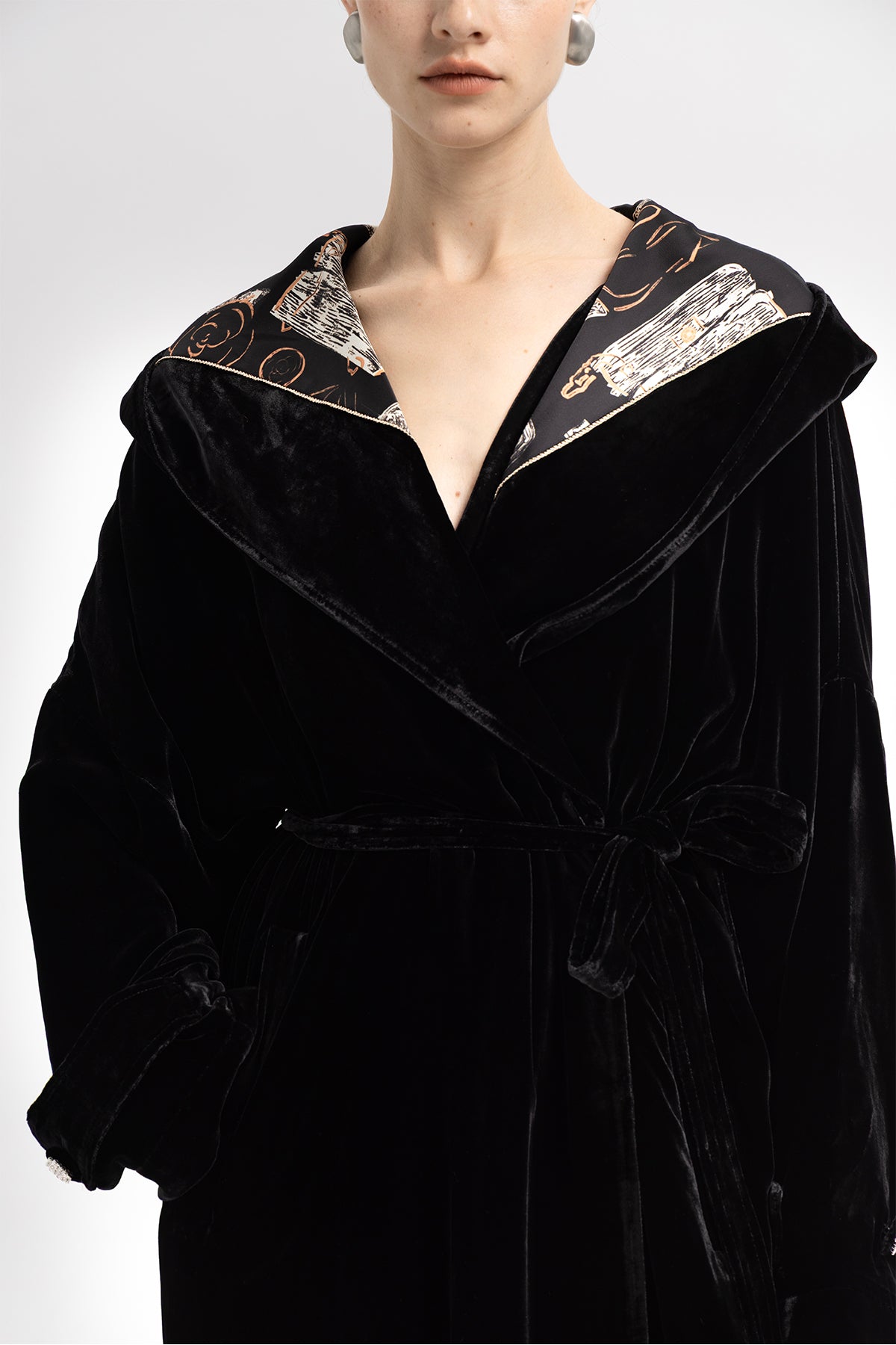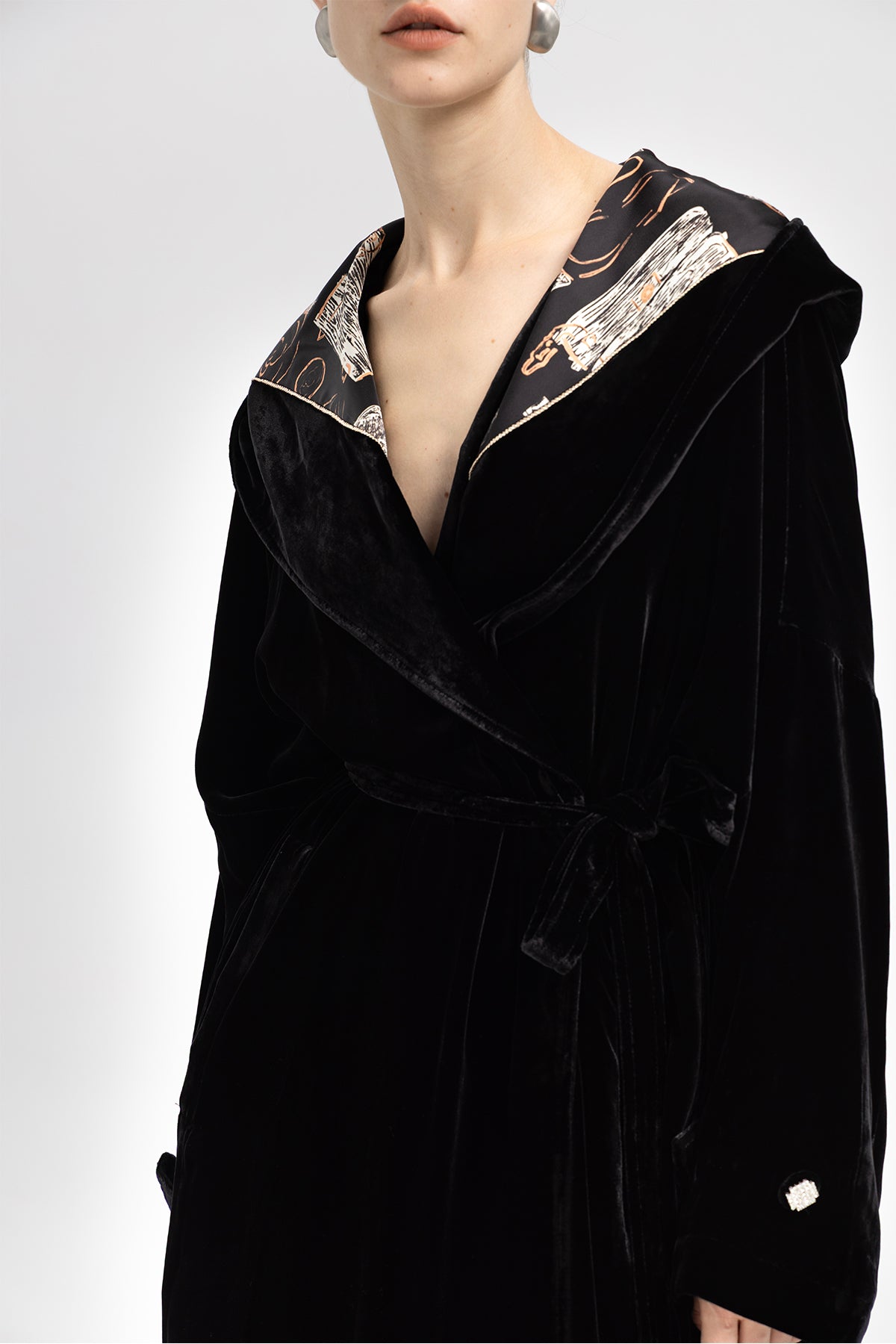 Luna Silk Velvet Belted Coat