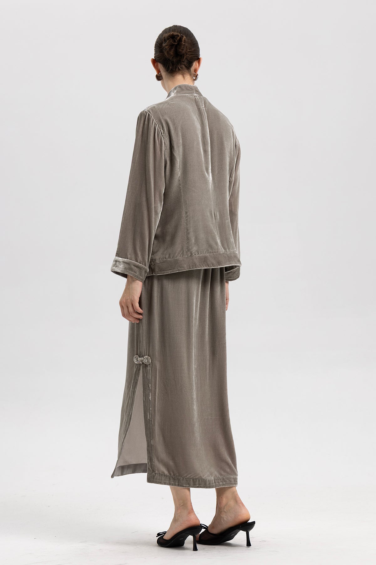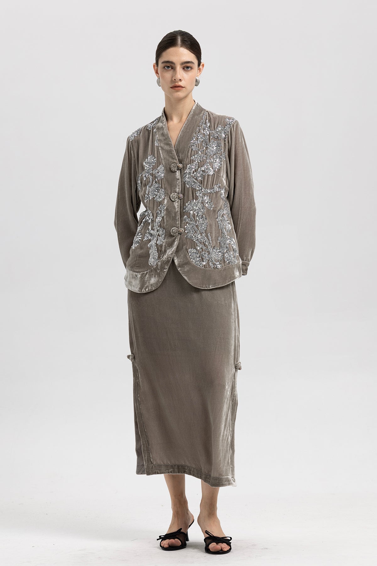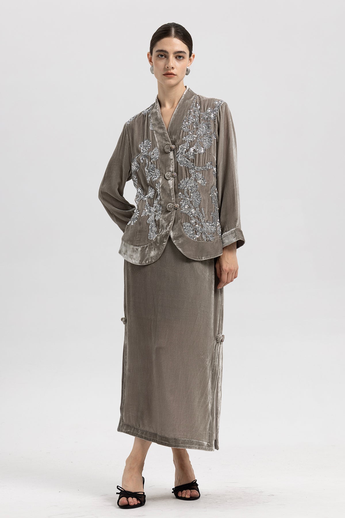 Sara Sequin Embellished Velvet Jacket & Skirt Set