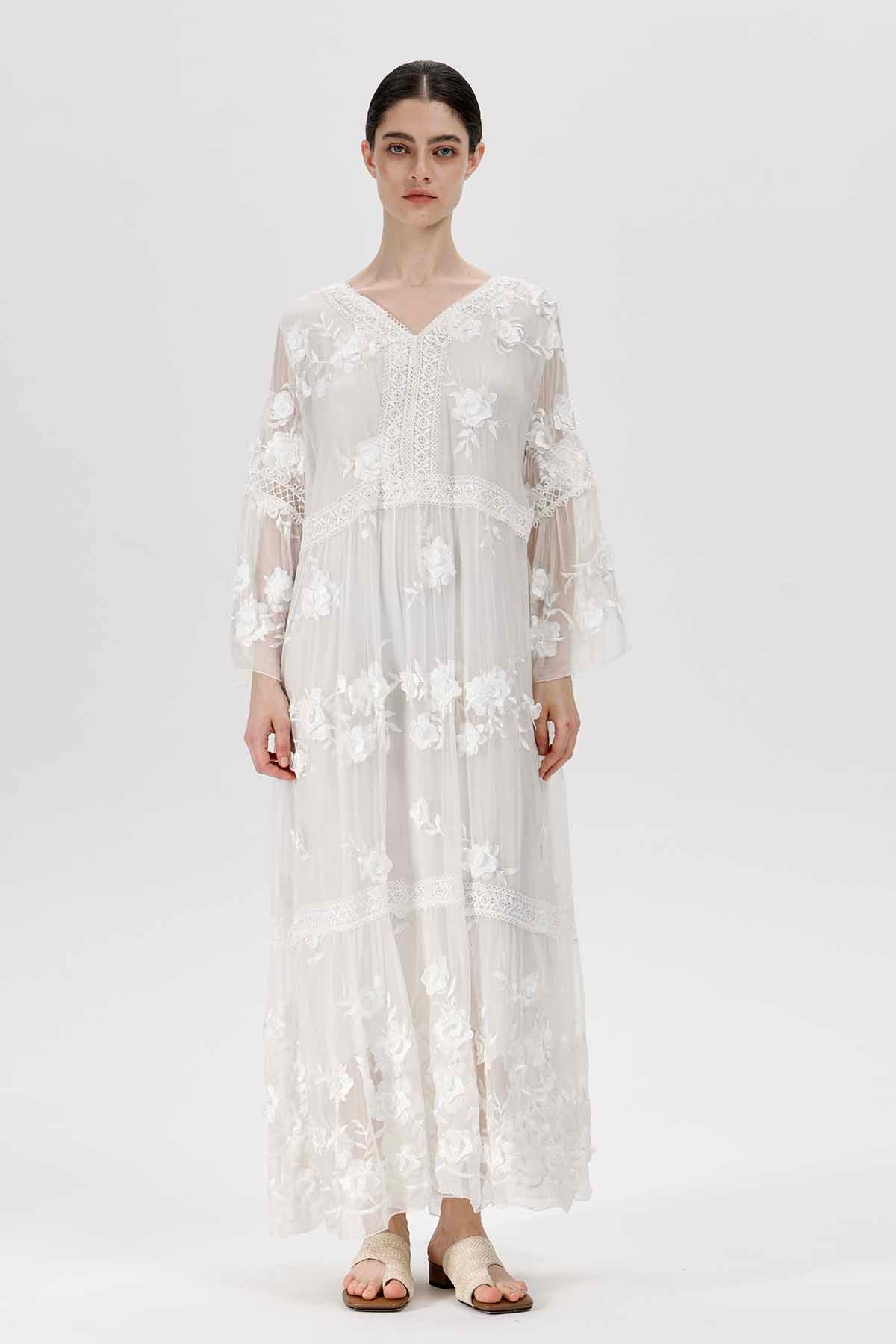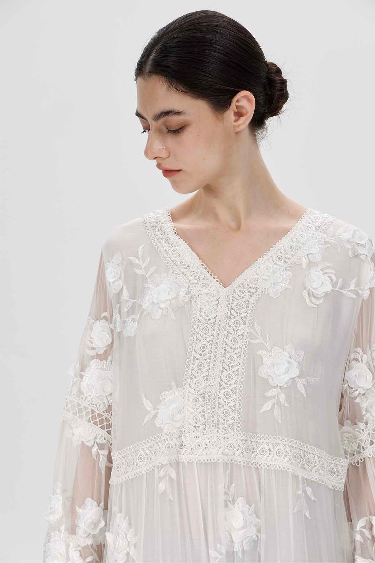 Selma V-Neck Embroidered Dress